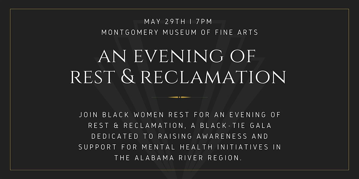Join Black Women Rest for An Evening of Rest & Reclamation, a black tie gala dedicated to raising awareness and resources for restorative and community centered mental health initiatives across the River Region. This special evening brings together community leaders, advocates, artists, and supporters who believe that wellness, rest, and healing should be accessible to everyone.
