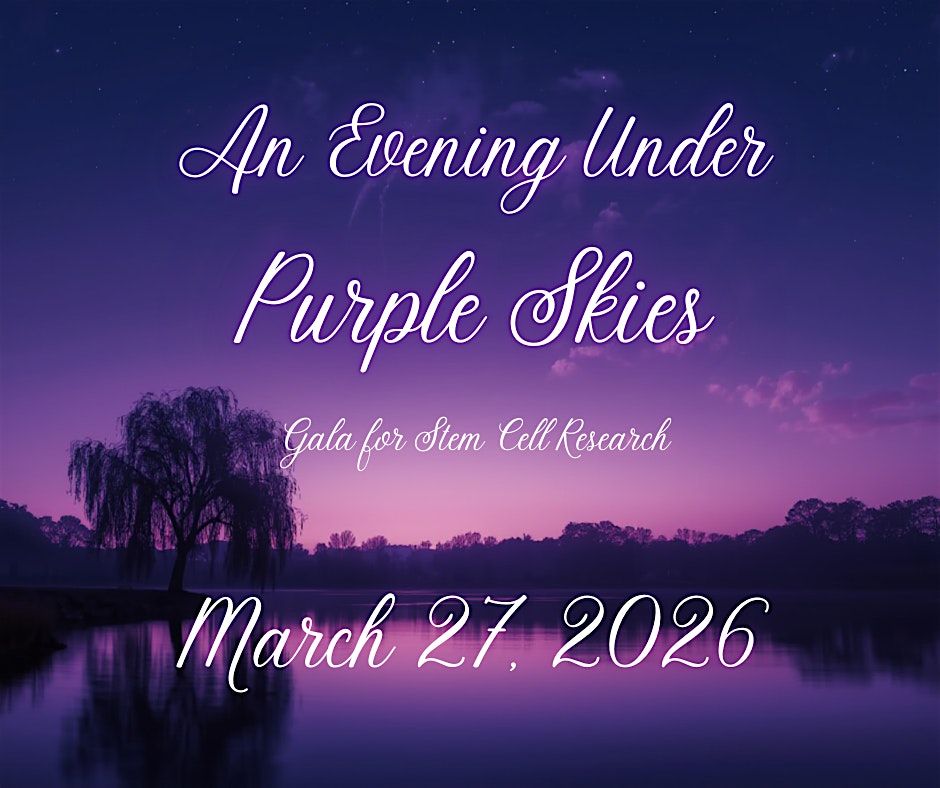Welcome to An Evening Under Purple Skies: Gala for Stem Cell Research! Join us for a magical night at A Secret Garden on March 27, 2026 at 6:00 PM (Central Time). Let's come together to support groundbreaking research in stem cells. It's going to be a night filled with hope, inspiration, and beautiful purple skies. Get ready for an unforgettable evening of elegance and impact. See you there!