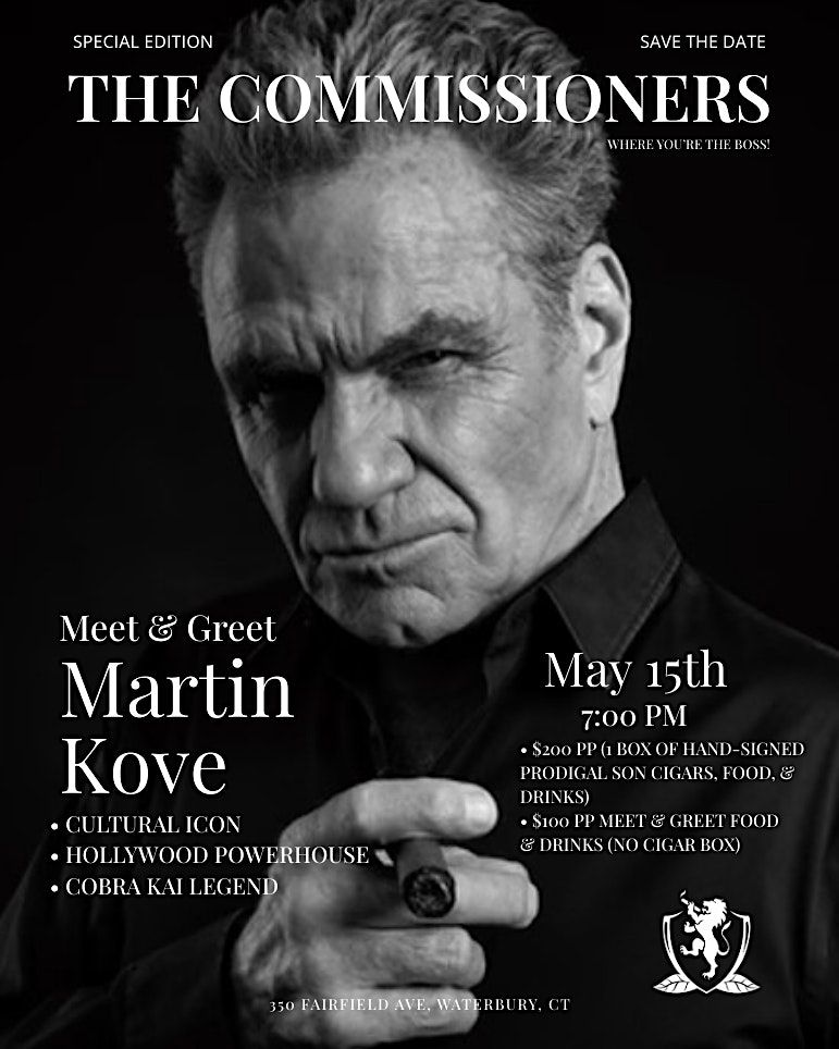 You’re invited to an exclusive night of cigars, conversation, and Cobra Kai legacy. The Commissioners Cigar Lounge is honored to host a rare meet-and-greet experience with Martin Kove, the legendary actor behind Sensei John Kreese of Cobra Kai and The Karate Kid.