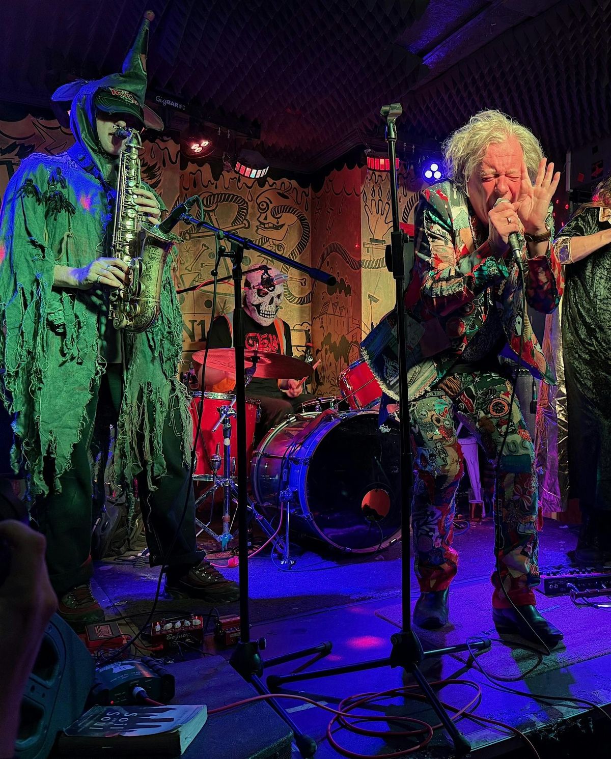 Aft-Err is Bones and the Aft in stripped down form featuring John Bently on words and costumes and his son Arthur Bently on homemade sounds.