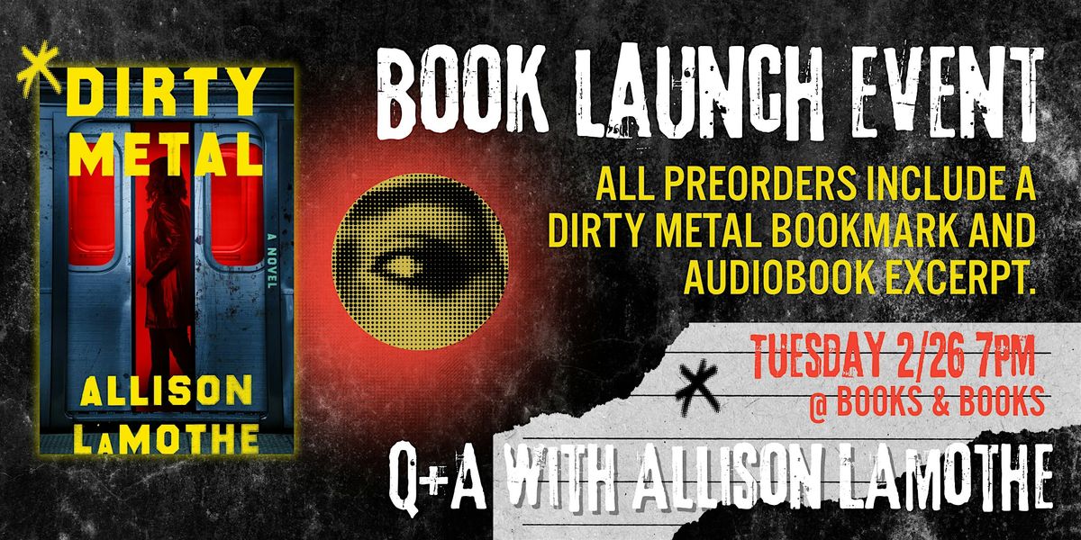 Join us for an evening with author Allison LaMothe for the release of her debut novel, Dirty Metal, set in early 90s New York City. Party like it's 1992 with 90s music, swag, and vibes. Wear your best 90s ensemble—best outfit wins a prize!