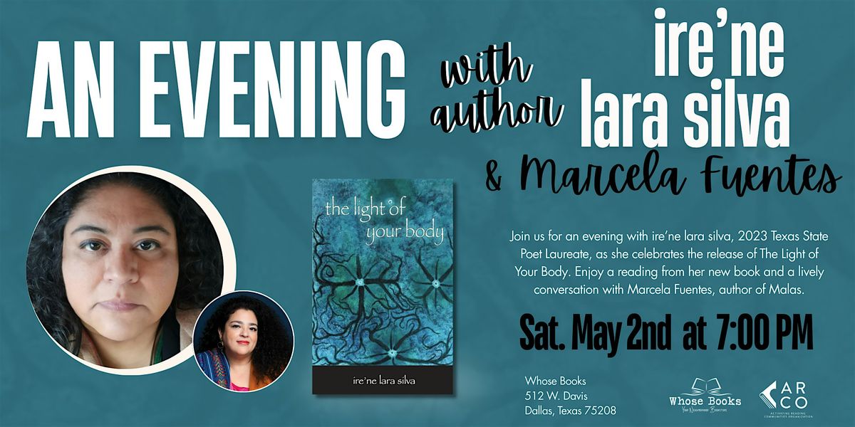 Join us for an evening with ire’ne lara silva, 2023 Texas State Poet Laureate, as she celebrates the release of The Light of Your Body. Enjoy a reading from her new book and a lively conversation with Marcela Fuentes, author of Malas.