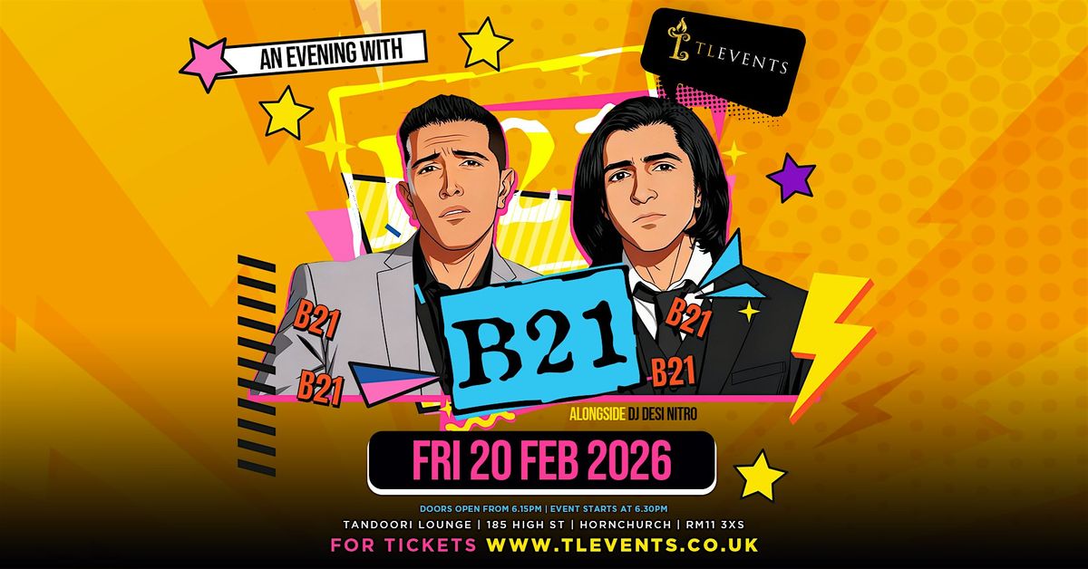 Join us for an exclusive evening with one of the most iconic Bhangra groups of all time. Expect nostalgia, energy, and pure entertainment as B21 bring their legendary sound to Hornchurch.