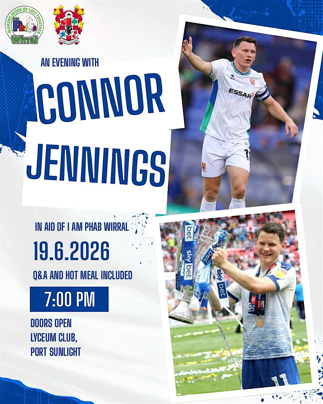 Join us for an evening with Tranmere Rovers legend and I Am Phab Wirral patron, Connor Jennings.