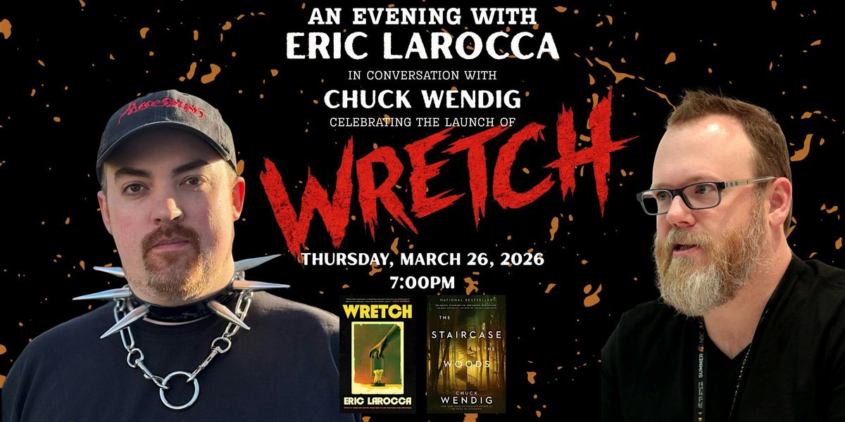 Join Thrillerdelphia for a special evening with Eric LaRocca, one of contemporary horror’s most provocative voices, in conversation with bestselling author Chuck Wendig, celebrating the release of LaRocca’s latest novel, WRETCH.