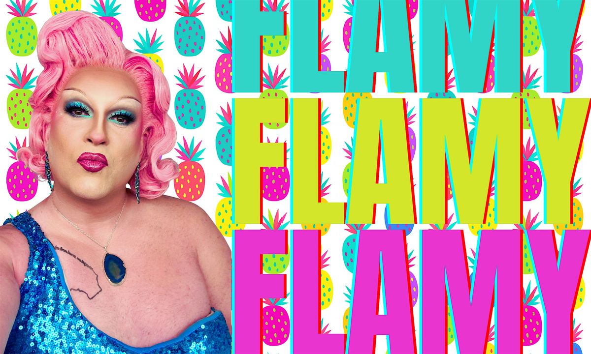 Beautifully blending her Appalachian roots with drag artistry and musical excellence, Flamy has stormed stages from Los Angeles to London, from New York to the Netherlands, racking up over 1.5 million streams on digital music platforms. This powerhouse vocalist, intrepid songwriter, and shame-slaying drag queen serves up a therapeutic, theatrical experience that is fearless, flamboyant, and full of heart.