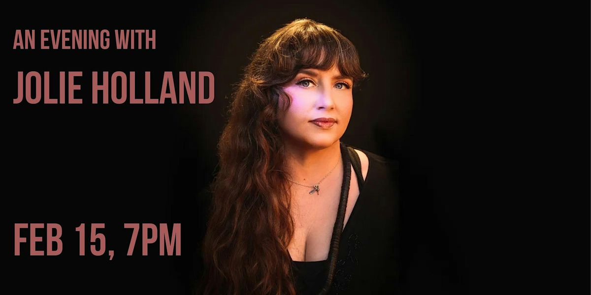 American multi-instrumentalist, bandleader, producer, and singer-songwriter JOLIE HOLLAND has been on the road since the early 2000s, releasing seven of her own albums and collaborating on countless others. Her work has been described as a syncretization of American roots, with rock and experimental elements. She’s been in the studio with Booker T, Lucinda Williams, and TV On The Radio; and shared stages with BigThief, St. Vincent, Elbow, and Mavis Staples. Her collaborators have included Hal Willner, Kronos Quartet, and Boots Riley. Lou Reed once told her, “I could have listened to you all night.”