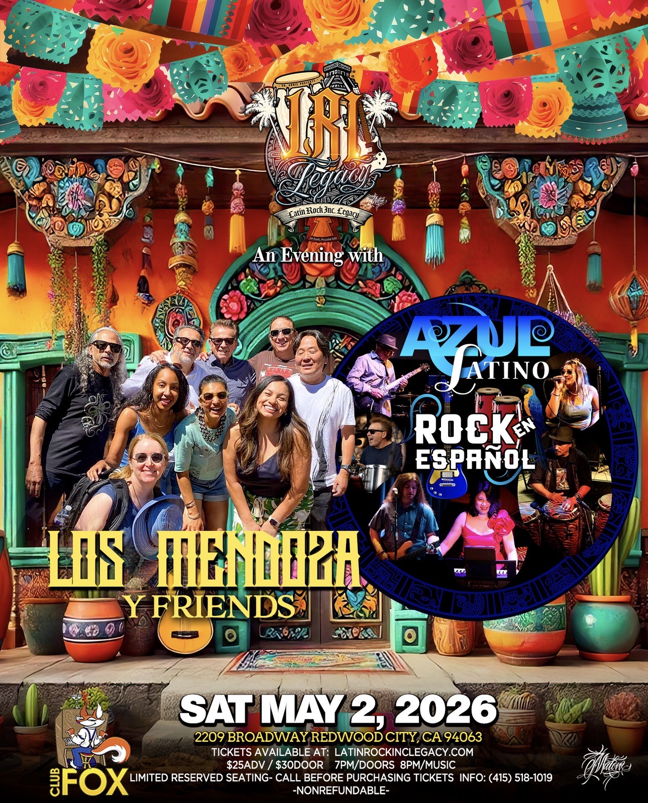 Step into a musical oasis with "An Evening with Los Mendoza & Friends" hosted by Latin Rock Inc, Legacy, a night set to ignite your senses and captivate your soul. Mark your calendars for May 2, 2026, at 7:00 PM at the vibrant Club Fox located at 2209 Broadway, Redwood City.