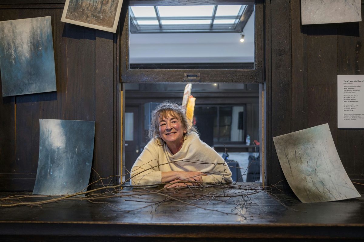 Michaela Harlow is a multidisciplinary Vermont artist with a CV spanning more than three decades. Her first solo exhibit took place in 1994 at Marlboro College. In the years since, she has shown her artwork in galleries, museums, and other public venues throughout the United States. In addition to her active studio practice and exhibition schedule, Michaela has simultaneously pursued a successful career in landscape and garden design. Over the years, these two separate but related passions have drawn closer together. Working the land in two and three dimensions, both solo and in collaboration with other artists and craftspeople, continues to push and develop her work in new ways. A Certain Slant of Light brings these elements together in one installation for the first time.