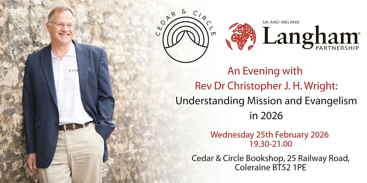 Register online to secure your spot for what is sure to be a full-house in the new conference centre above the Cedar & Circle bookshop in Coleraine. Everyone who attends will also receive a copy of Dr. Wright's Understanding Mission Study Guide in conjunction with Langham Partnership.