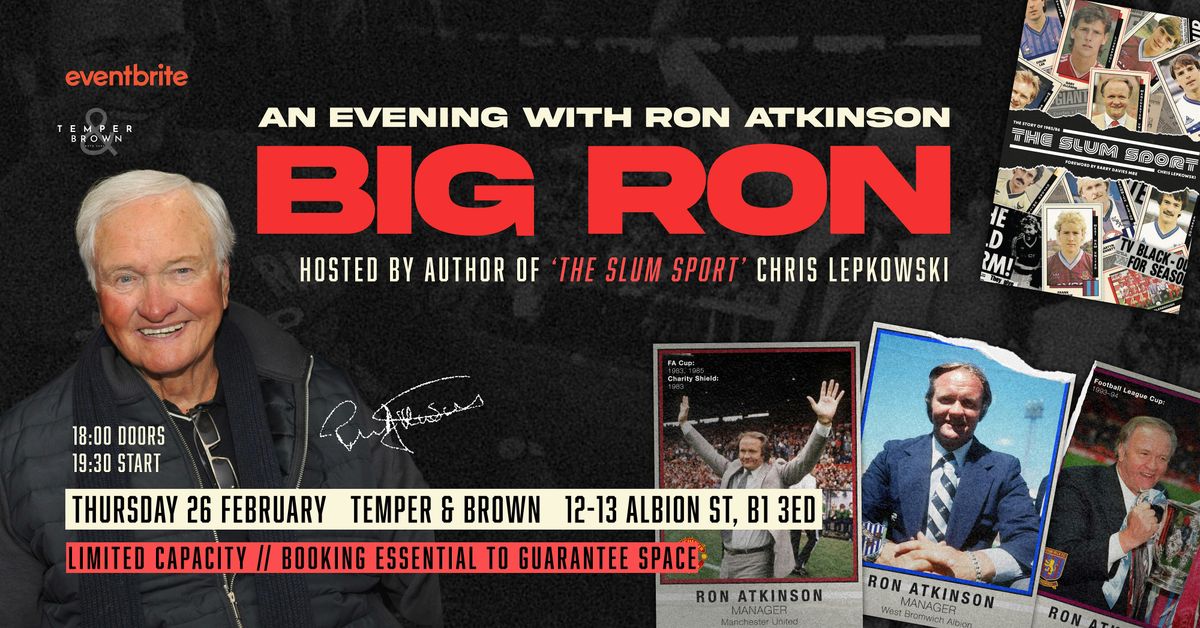 One of English football’s most recognisable and influential figures, 'Big Ron' will reflect on a remarkable career, with a particular look at his time with Manchester United, West Bromwich Albion, and Aston Villa - as documented in new book The Slum Sport.