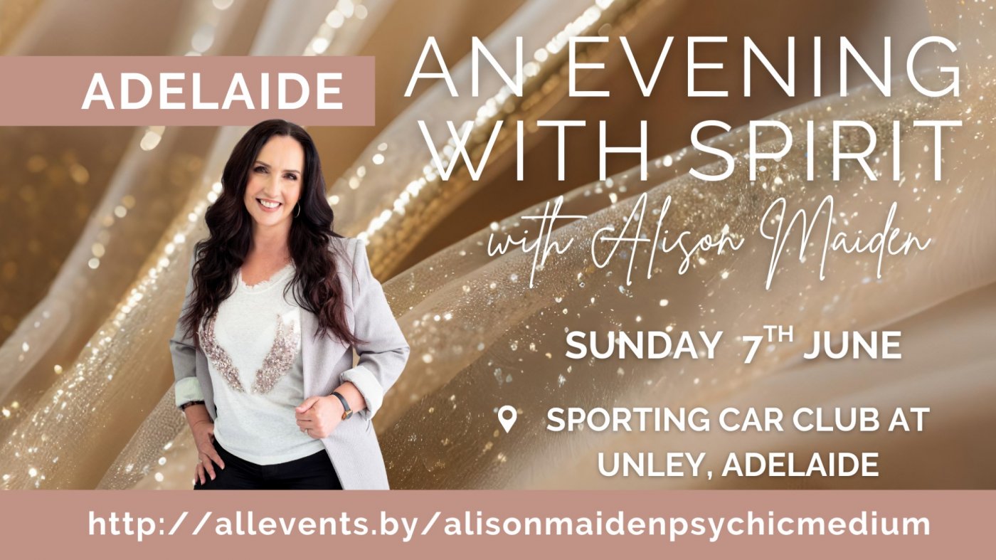 Join Australia's best known Psychic Medium, Alison Maiden for an unforgettable evening of direct spirit communication.