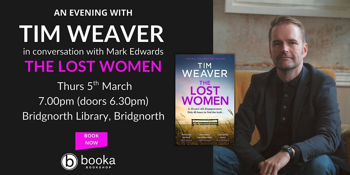 Join us in Bridgnorth for an evening with bestselling author Tim Weaver as he talks ‘in conversation’ with fellow crime writer Mark Edwards about his heart-stopping new thriller The Lost Women, the 15th David Raker novel.