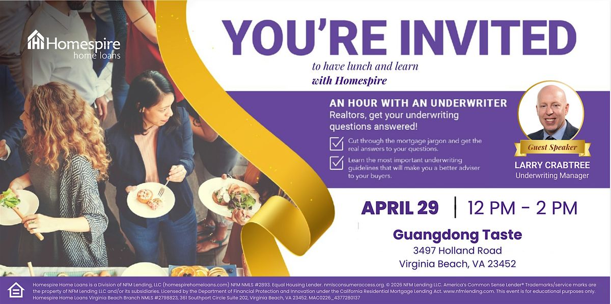 Realtors, join us for An Hour with an Underwriter - enjoy lunch, a cocktail, and get your underwriting questions answered.