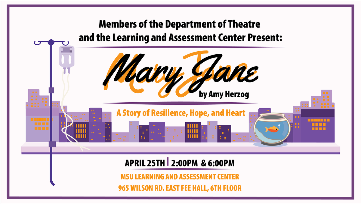 Students from the MSU Department of Theatre and The MSU Learning assessment present The Theatrical Production of Mary Jane by Amy Herzog - an emotionally resonsant play centering on Mary Jane, a single mother caring for her medically fragile son, highlighting the support systems, emotional toll, and quiet resilience of caregivers.