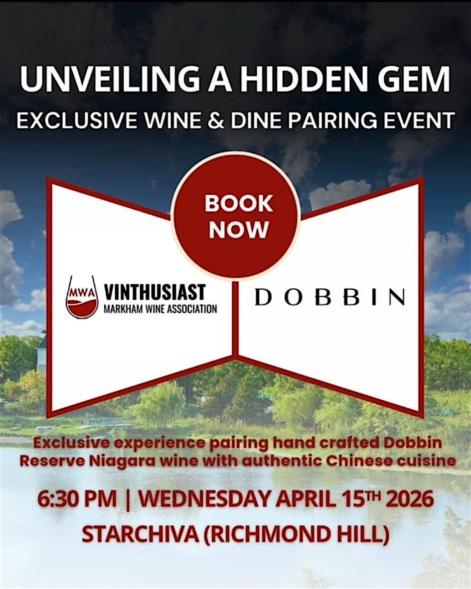 Join us for an exclusive, handcrafted experience! This is a rare opportunity to explore the boutique flavors of Niagara curated by the winemaker of Dobbin Estate himself and hosted by the Markham Wine Association / Vinthusiast. These ultra-premium, small-batch wines are a true hidden gem and not available for purchase at the LCBO, making this one of the few ways to experience them. Discover the perfect symphony of flavors as these world-class bottles are paired with an authentic Chinese feast.