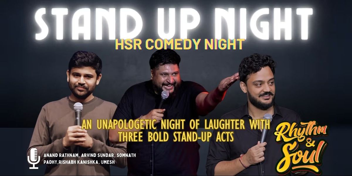 HSR Comedy Night - An unapologetic night of laughter with three bold stand-up acts. From savage punchlines to brutally honest observations — bring your friends, leave your shame at the door, and prepare for a wild, unforgettable comedy ride!