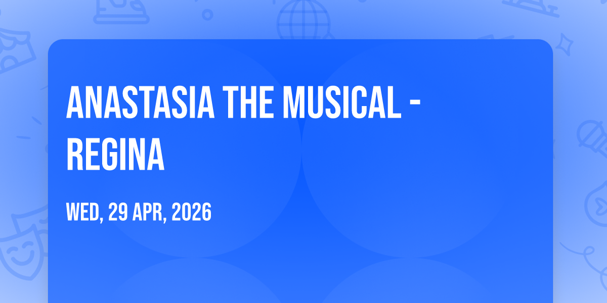 📍 Location: 50.4284, -104.598🌟 Be part of history at Anastasia The Musical - Regina, an extraordinary gathering that will captivate your imagination! 🏛️ The prestigious Conexus Arts Centre in Regina, SK sets the stage for an unforgettable experience on April 30th, 2026 at 01:00 AM. ✨ They are bringing together the finest elements of entertainment and innovation to create moments that will take your breath away. From the moment you arrive, you'll be immersed in an atmosphere of wonder and excitement. 🎯 This carefully planned event ensures every guest experiences something truly special. 🎊 Early booking is recommended for this must-attend event of the season!