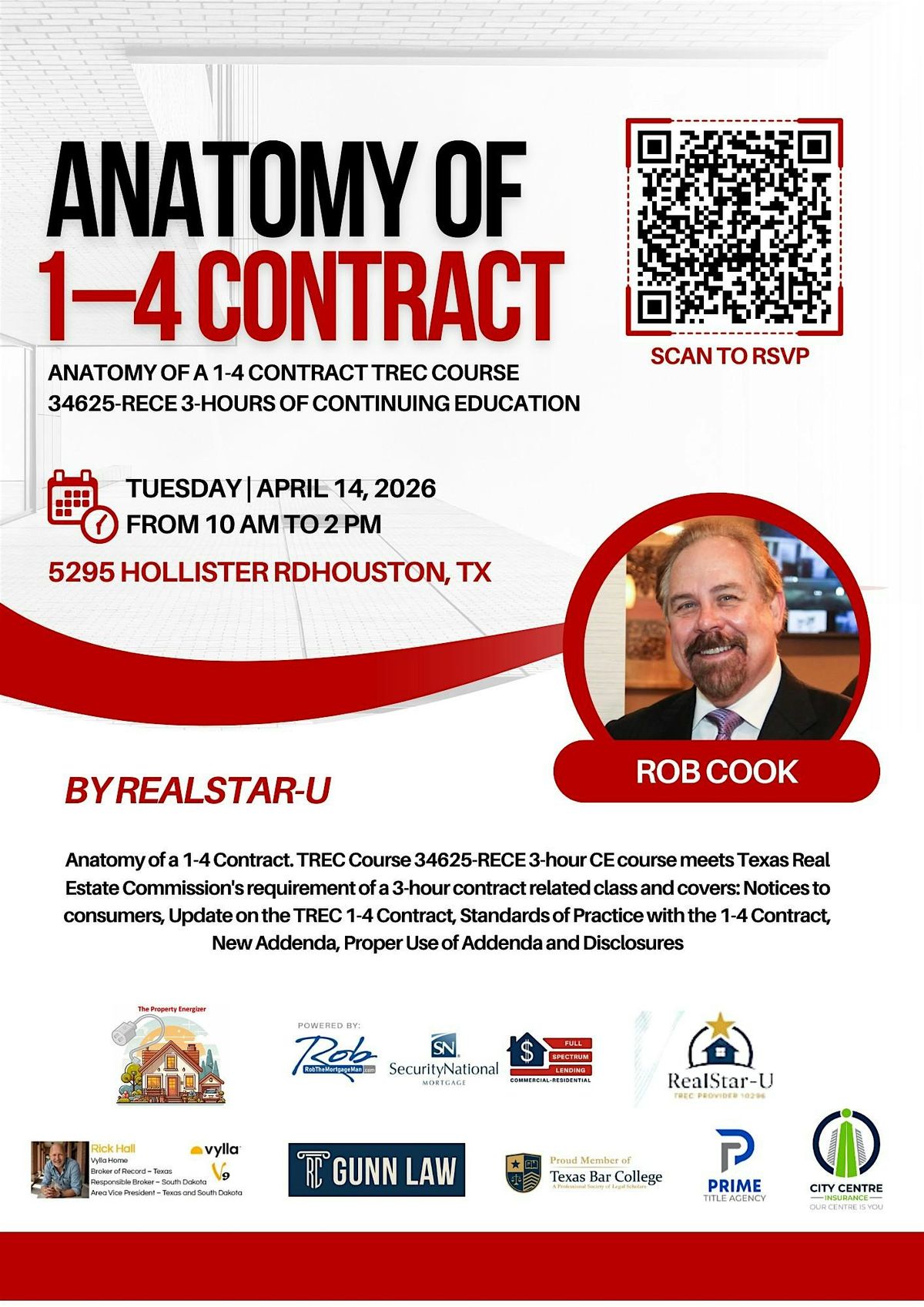 Anatomy of a 1-4 Contract. TREC Course 34625-RECE 3-hour CE course meets Texas Real Estate Commission's requirement of a 3-hour contract related class and covers: Notices to consumers, Update on the TREC 1-4 Contract, Standards of Practice with the 1-4 Contract, New Addenda, Proper Use of Addenda and Disclosures