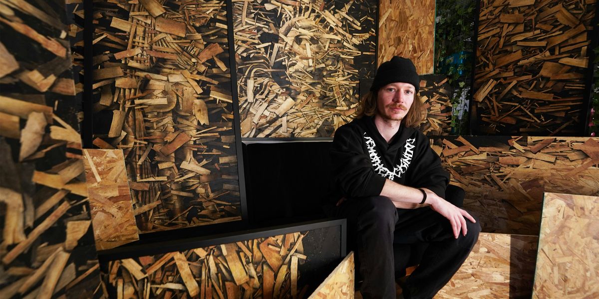Working in ink and charcoal on OSB board, Pizarro transforms industrial material into powerful contemporary compositions. Rather than fragmenting a finished form, his figures emerge from structural units that gradually assemble into fully realized forms.