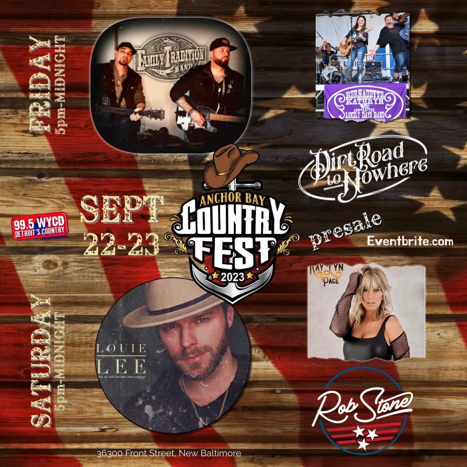 3rd Annual Anchor Bay Country music festival.Located in Downtown New Baltimore on beautiful Anchor Bay