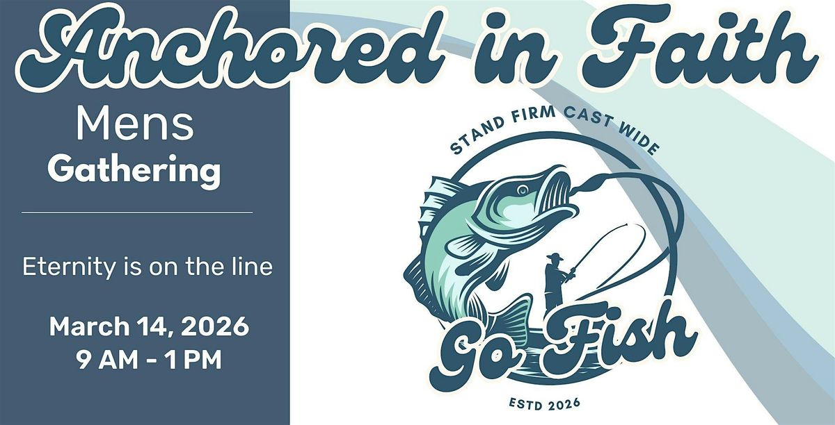 Join us for the Anchored in Faith Mens Gathering — an awesome chance to connect, grow, and strengthen your faith along side other men. We'll explore what it means to be intentional, patient, and grounded in faith - Casting our lines with wisdom, standing firm in life's rough waters, and guiding others toward Christ. Just as a fisherman prepares his gear and knows when to wait and when to act, a godly man must be anchored in faith and ready to lead. Lunch will be provided.