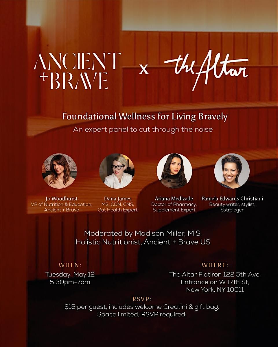 Join Ancient + Brave and four experts for an honest conversation about foundational wellness to empower the modern woman. Because in a world obsessed with the next thing, returning to what the body has always needed is a radical act. Expect real talk, practical tools, and a live Q&A.