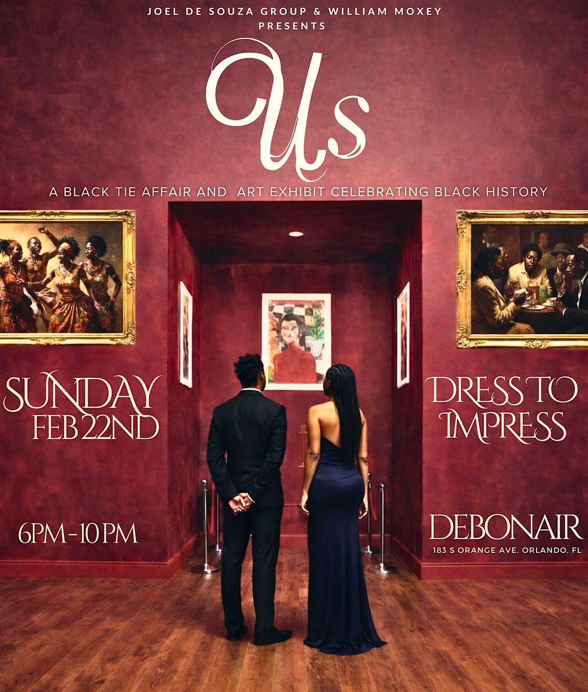 Join us for an unforgettable evening of culture, elegance, and celebration. “US” is a black-tie experience featuring a curated art exhibit, live music, and immersive entertainment in honor of Black History Month.