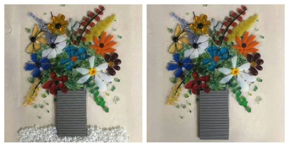 Please join us for this beautiful "Blowin In The Wind" workshop. Make your very own fused glass floral bouquet creation. You can choose to frame it (frame not included) or hang it (we can apply hooks together in class) Approx size 7 x 9 (so that you can fit it onto an 8x10 frame if you'd like)