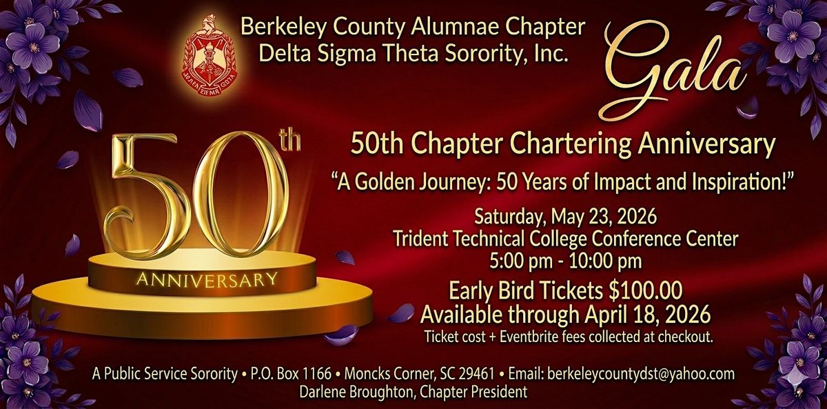 Join the Berkeley County Alumnae Chapter of Delta Sigma Theta Sorority, Inc. as we celebrate a monumental milestone—our 50th Chapter Chartering Anniversary Gala.