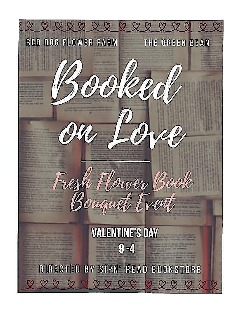 Join Red Dog Flower Farm, Green Bean Coffee Shop, and SIPn'READ Bookstore for a special Fresh Flower Book Bouquet Workshop. Grab a handcrafted coffee and tasty snacks from Green Bean Coffee Shop, then head over to the bookstore to create a one-of-a-kind book bouquet using fresh flowers from Red Dog Flower Farm—perfect to share with your Valentine or keep for yourself.