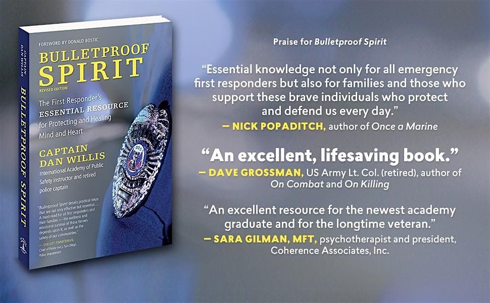 This is a free event that is being sponsored by Behind that Badge, Inc. To attend this event you must be an active first responder or corrections officer and spouse / significant others are encouraged to attend. The doors to the event open at 8:00 am for registration and the event starts at 8:45am. Continental breakfast will be served and food trucks will be on site for lunch (not inlcuded ). There will also be a testimonial presentaiton after lunch. The event will conclude at approximately 4:00 pm. Participants will receive a copy of Captain Dan Willis' book, "Bulletproof Spirit" (1 per couple).
