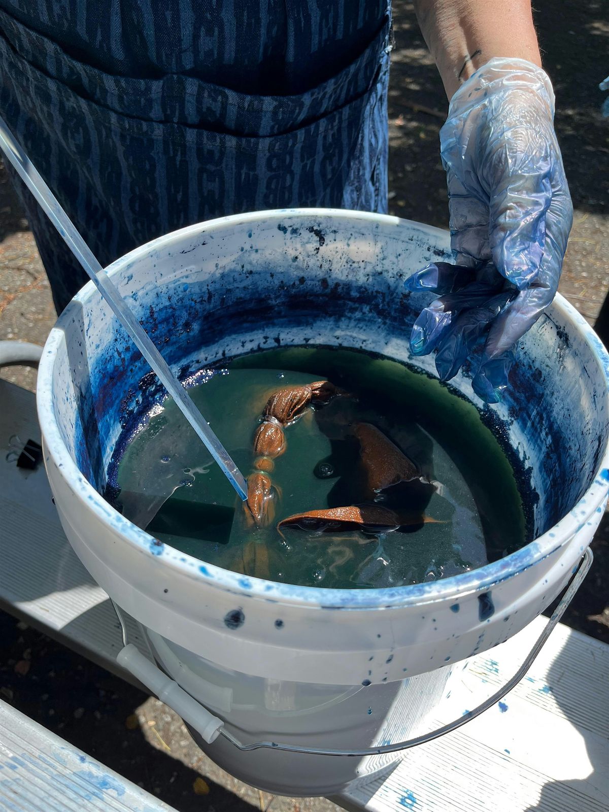 Dye an item made from mixed fibers! Bring some paper and try painting with the dye! Curious to see how a pair of old shoes take Indigo? Dunk 'em and see! Want to take home a cup of dye home and try to dye your wooden mailbox? Go for it! The disclaimer that goes along with this event is that Jaya certainly doesn't know how the Indigo Vat will be fairing at this point... It will likely be weaker and less consistent, as it nears exhaustion. This is just a chance to experiment with the last of the Indigo Vat, before it gets discarded.
