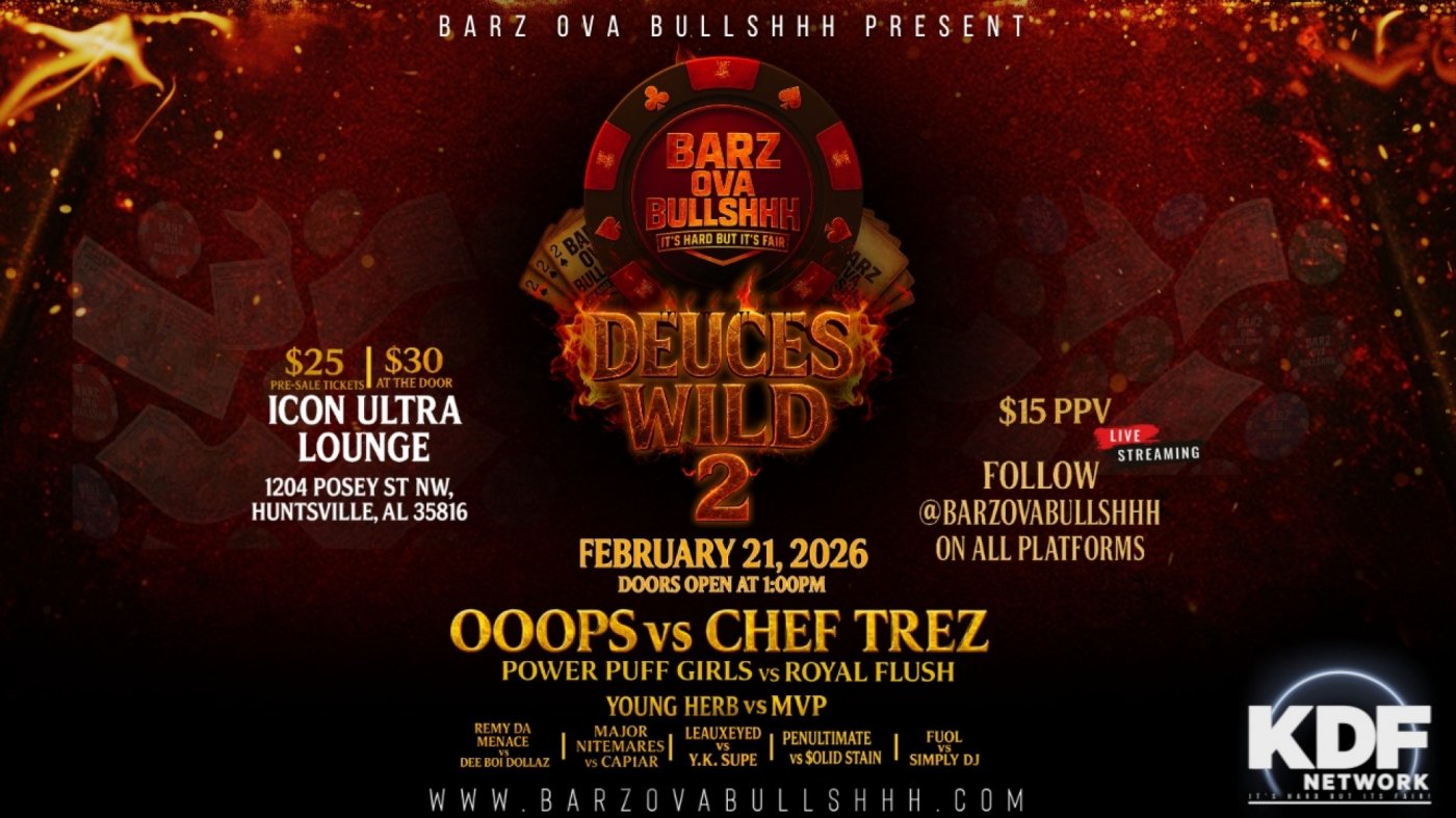 Deuces Wild 2 is the next explosive battle rap event from Barz Ova Bullshhh, featuring top-tier emcees and unforgettable clashes.