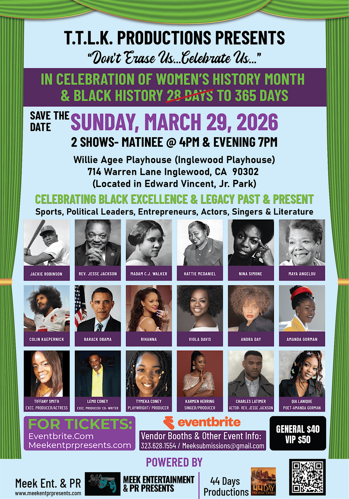 2 Shows-4pm Matinee & 7pm Evening @Inglewood Willie Agee Playhouse 714 Warren Lane Inglewood, CA 90302 (Located in Edward Vincent Jr. Park)