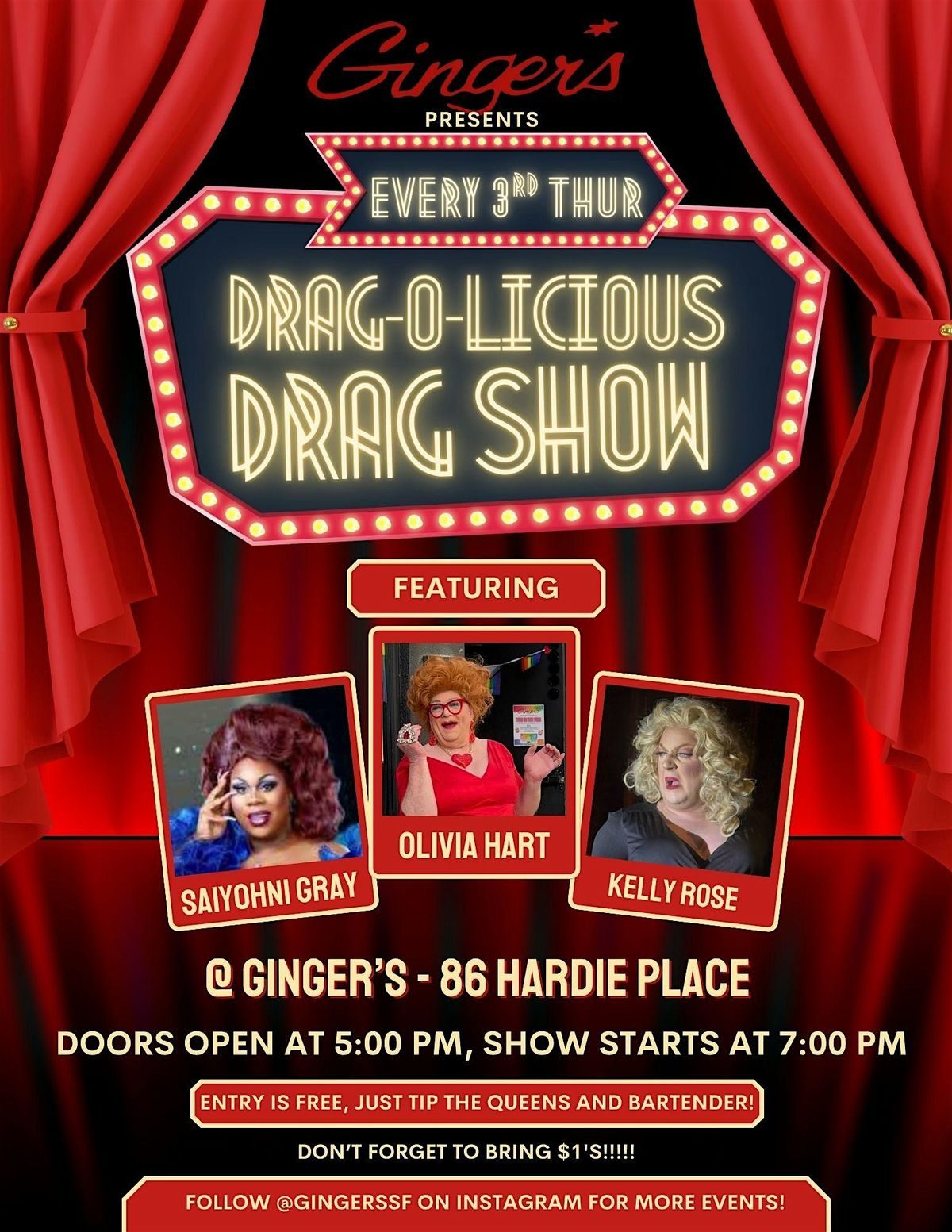 "DRAG-O-LICIOUS" Drag Show @ Ginger's every Third Thursday of the month!
