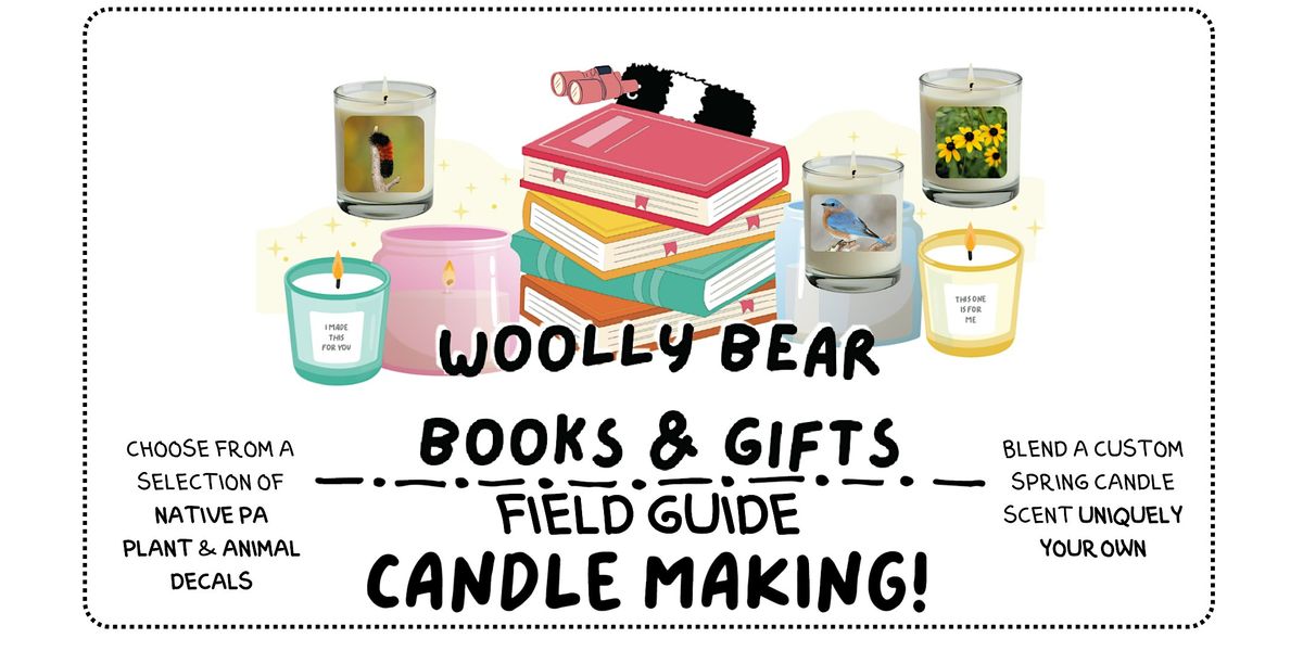 Come join us at Woolly Bear Books and Gifts on Saturday April 18th to create your own nature inspired custom candle.