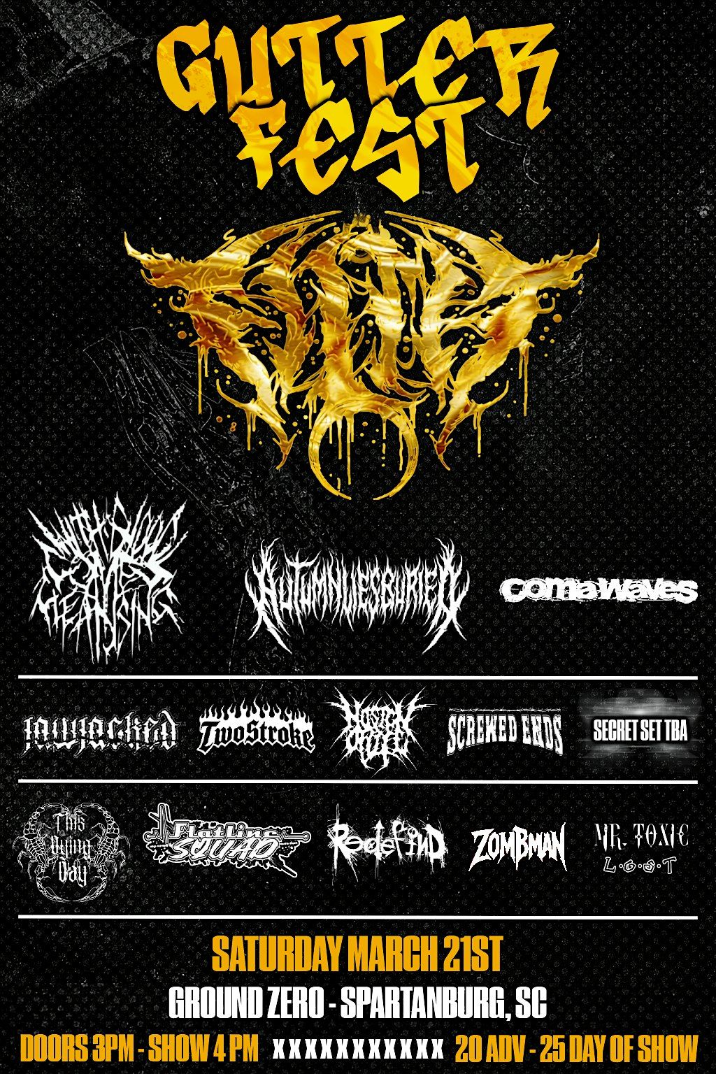 All day event 2 stages . Filth , Autumn Lies Buried,Redefind,Blood Comes Cleansing, NoSignOfLife, Screwed Ends ,2StrokeSmoke, Mr.Toxic,LOST