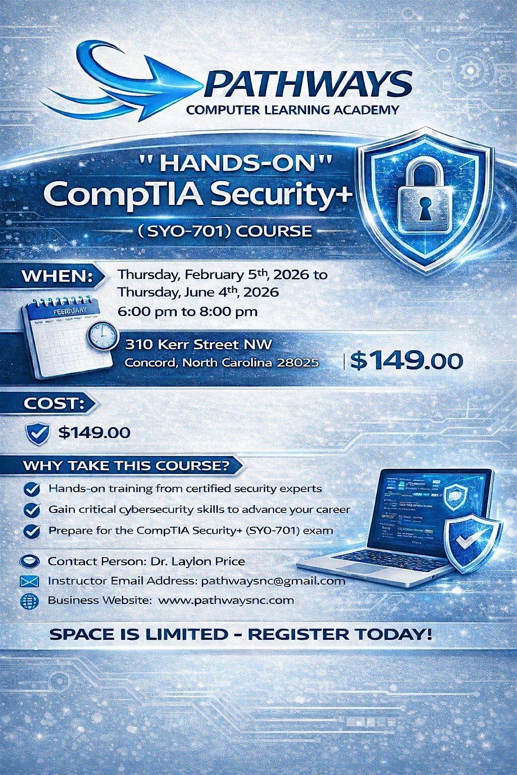 What: Pathways Computer Learning Academy, LLC "HANDS-ON" CompTIA Security(SY0-701) Certification Course
