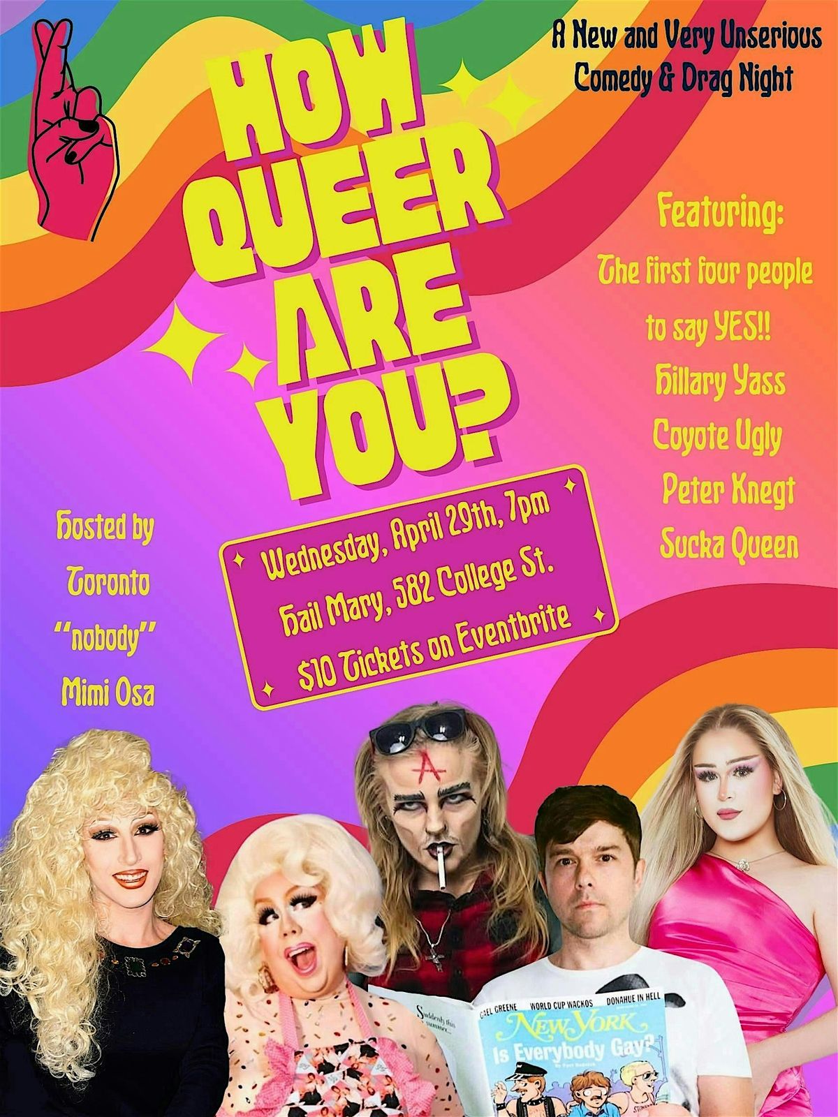 In this new show, each performer will take the stage to (hopefully) inflict laughter on an audience held hostage - I mean, captivated! Expect stand-up, sketch comedy, comedic lip sync numbers, and a foolish game or two (No Jewel involved). Join Mimi as she embarks on a quest to quantify and validate the queerness of four lucky performers - she does have a degree in Gender Studies, after all. Do they have a Sphynx cat for a pet? Do they own Tegan & Sara's "Sainthood" on vinyl? Have they completed treatment for an STI in the past 2-4 weeks? All these questions and more will help Mimi and the audience to determine just how queer these people really are!