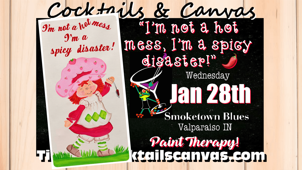 I'm Not a Hot Mess, I'm a Spicy Disaster - Cocktails & Canvas Strawberry Shortcake themed Paint and Sip Event.