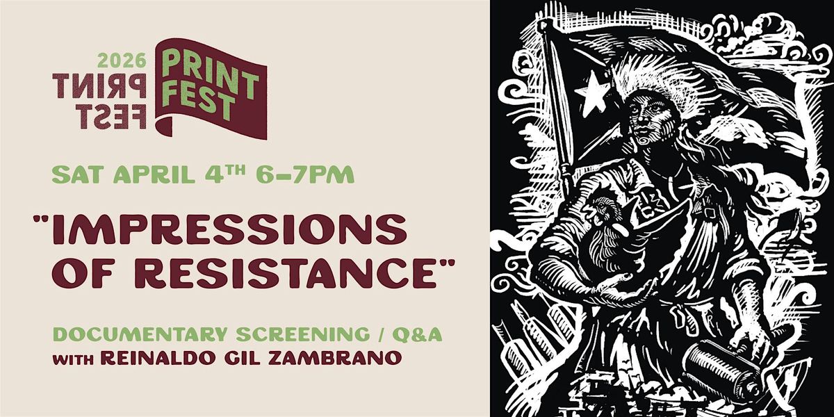 We will be airing the 20 minute documentary "Impressions of Resistance" directed by artist Reinaldo Gil Zambrano produced by Miranda Metcalf and Hello Print Friend.