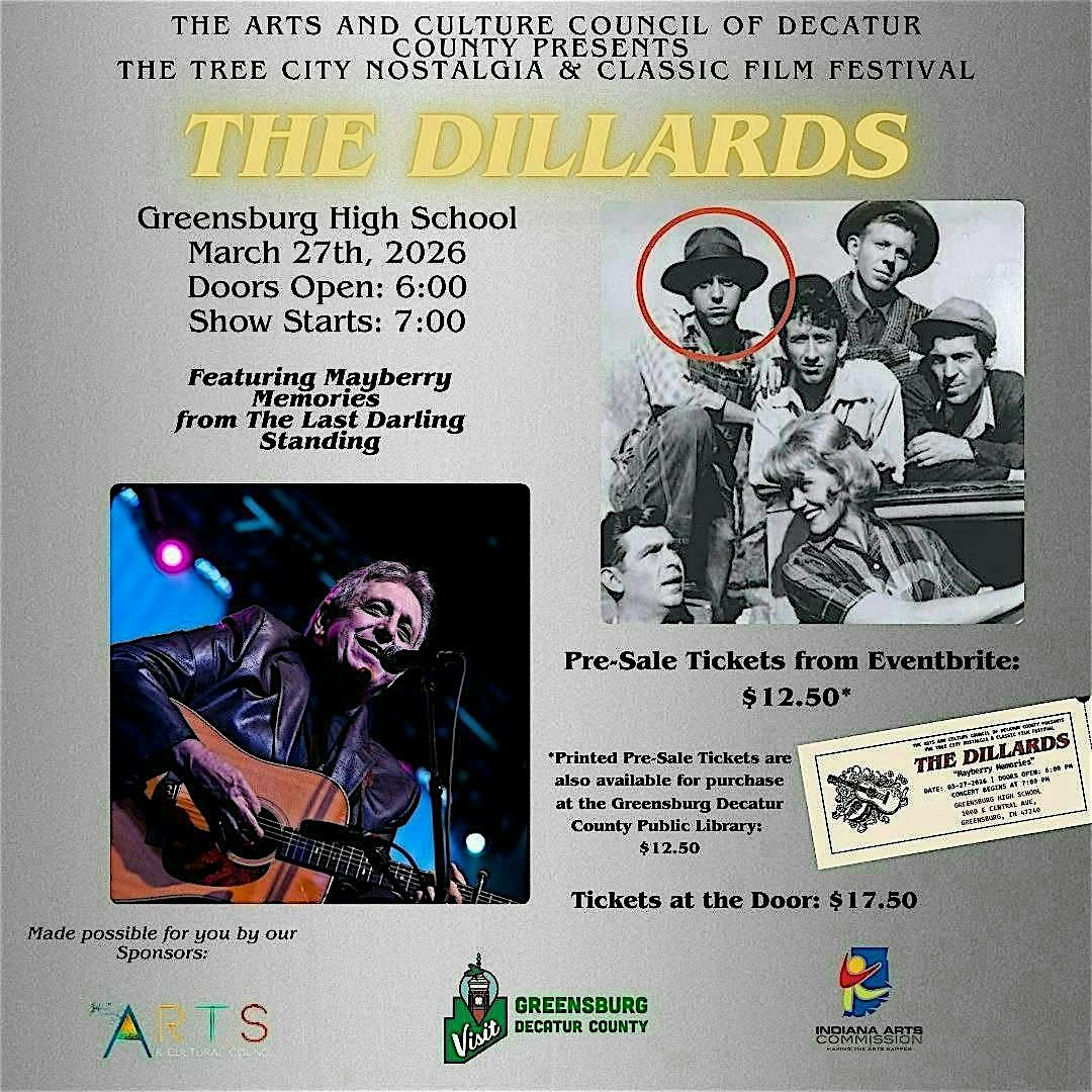 Get ready for an unforgettable night with The Dillards as they bring the charm of Mayberry to life by The Arts and Cuture Council of Decatur County, Visit Greensburg, and the Indiana Arts Commission!