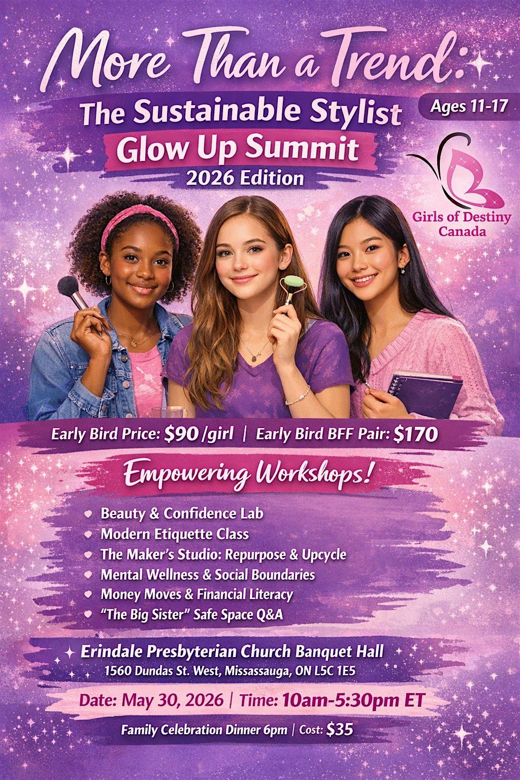 Step into a powerful space designed just for you, where style meets purpose and your glow comes from within. This in-person summit invites you to explore sustainable fashion, build confidence, and express your unique identity with intention. Connect with inspiring mentors, gain real-life skills, and discover how to shine boldly while making meaningful choices.