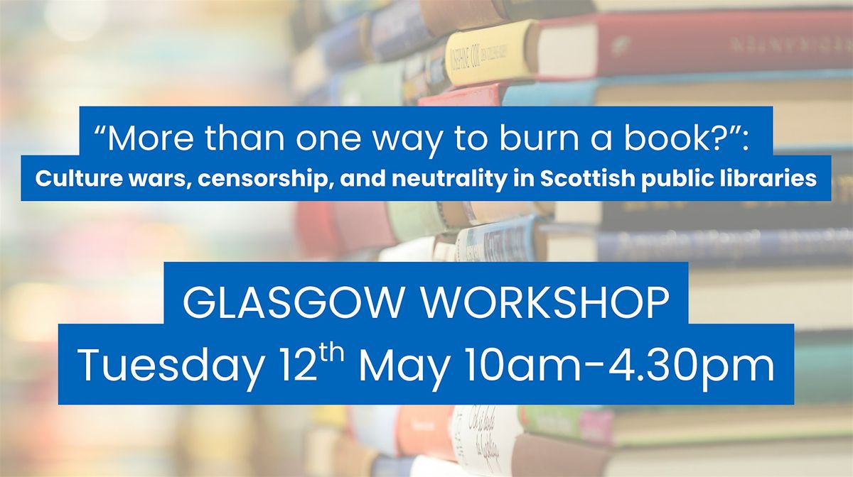 For the final stage of the research project, “More than one way to burn a book:culture wars, censorship, and neutrality in Scottish public libraries,” funded by the Royal Society of Edinburgh, we will be hosting a full day workshop in Glasgow at the CILIPS Office(Robertson House,152 Bath St, Glasgow, G2 4TB). This event will take place on Tuesday 12th May, from 10am -4.30pm.