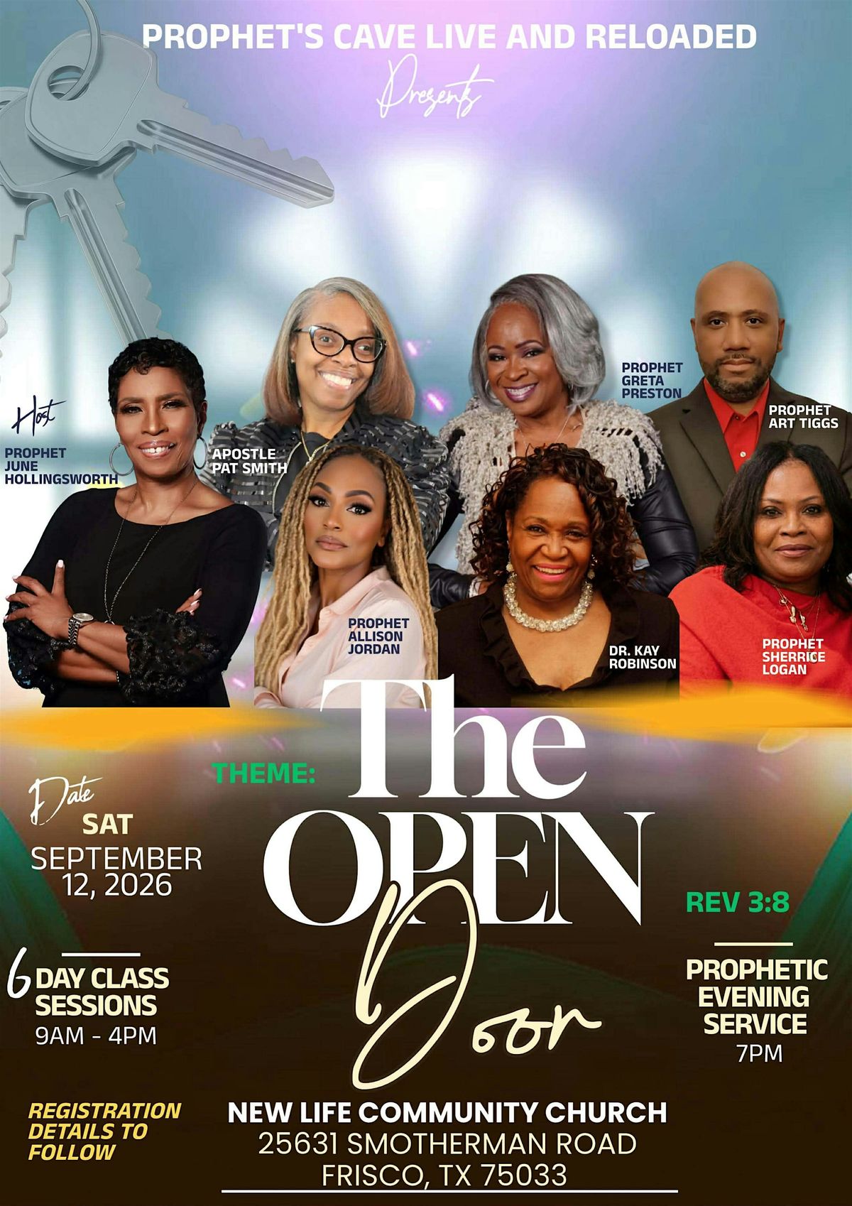 There will be on site classes beginning at 9:00 AM and ending at 2:30 PM. Each class registration is $25. Evening service begins at 7:00 PM and is free to the public.