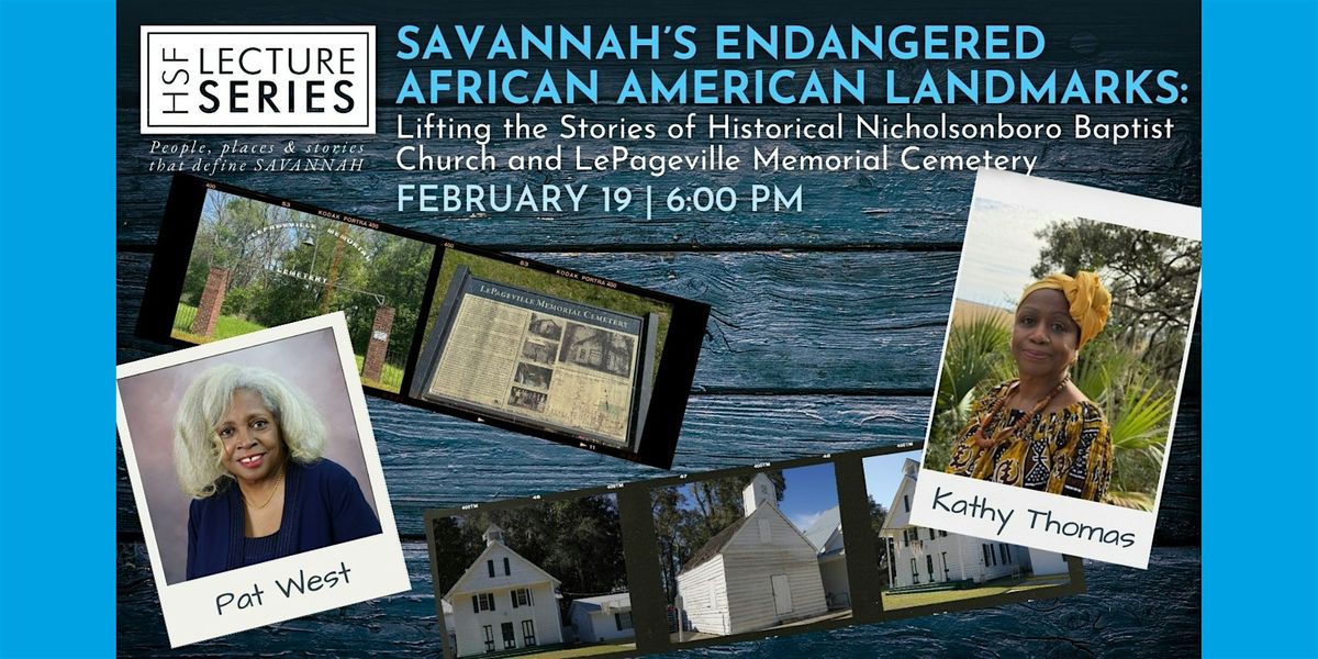 Historic Savannah Foundation (HSF) — the leading nonprofit cultural institution dedicated to saving the buildings, places and stories that define Savannah’s past, present and future — will host an informative, engaging lecture titled “Savannah’s Endangered African American Landmarks: Lifting the Stories of Historical Nicholsonboro Baptist Church and LePageville Memorial Cemetery” as part of the Historic Savannah Foundation Lecture Series, “The People, Places and Stories that Define Savannah.”