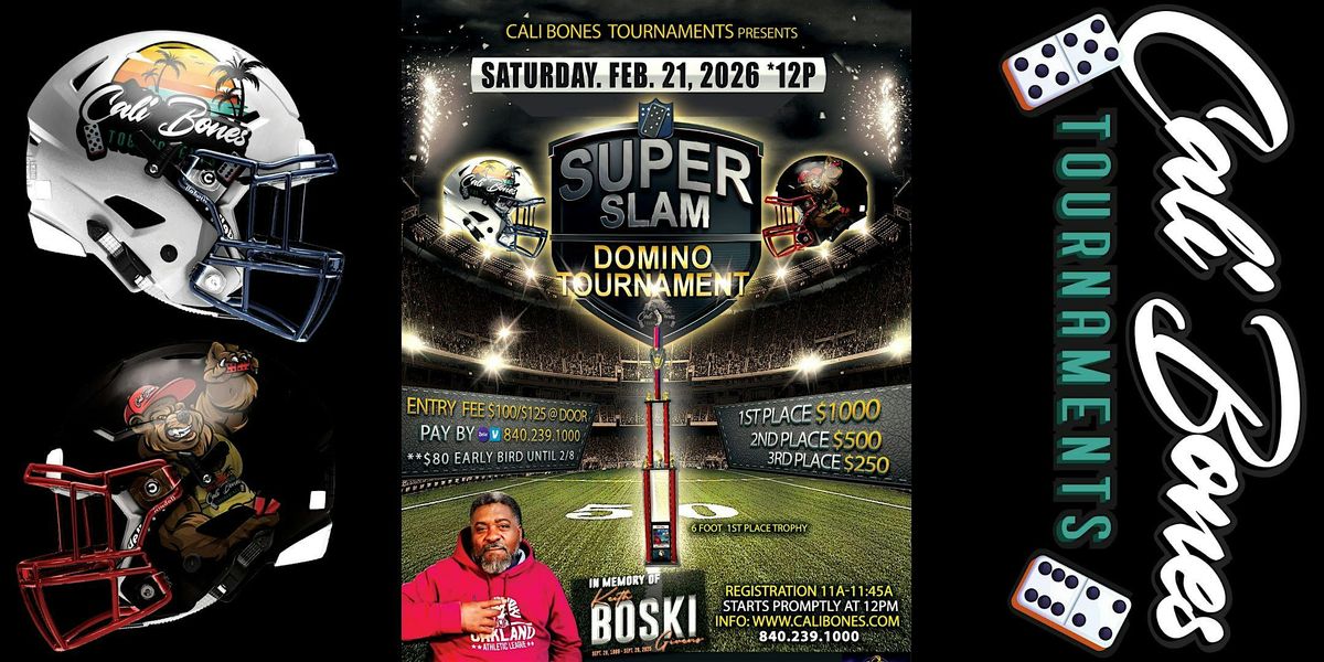 presents"SUPER SLAM" Domino Tournament". Tournament to be held at onFebruary 21, 2026. Check In at 11AM. 12 NOON start