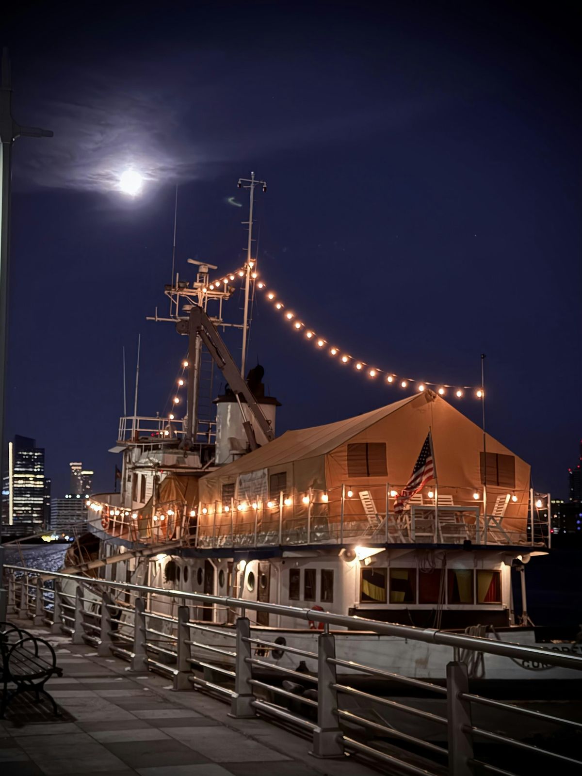 6:45pm-7:00pm: Arrival/Check-in at gangway (boarding ramp) to ship, Pier 25/Hudson River Park