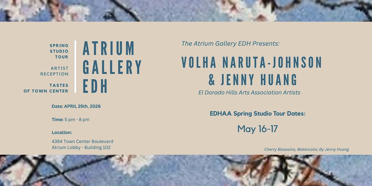 The night begins at The Atrium Gallery EDH with Spring Studio, an artist reception featuring EDH Arts Association Artists, hosted by the EDH Foundation and sponsored by a local business. Meet the artists, enjoy the gallery experience, and then fan out across Town Center to discover what participating businesses have curated for the evening.